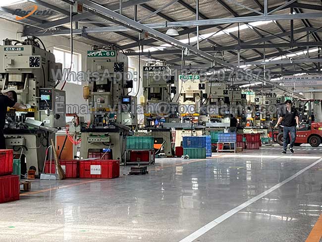 Construção em Aço Estampado: O grampo é normalmente fabricado em aço carbono, proporcionando um material de base forte e econômico. O alojamento é um componente de aço estampado com abas perfuradas que se encaixam firmemente na abraçadeira.