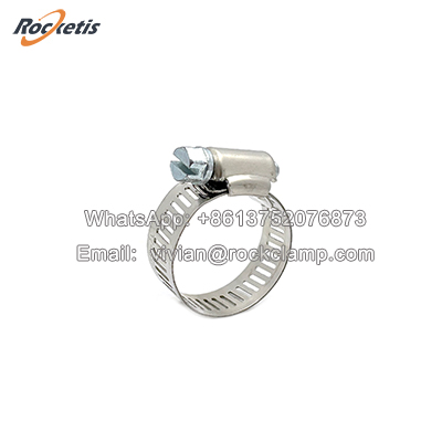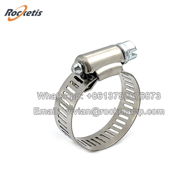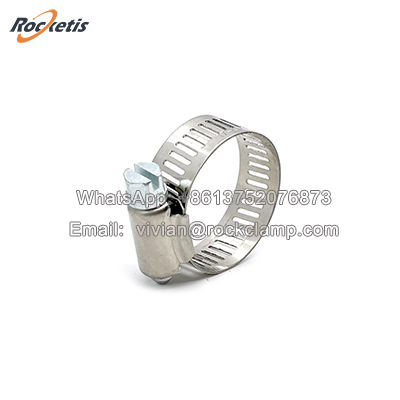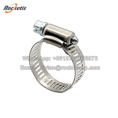 Abraçadeira de Aço Perfurada: A abraçadeira é feita de aço carbono e perfurada com uma série de ranhuras retangulares. Essas ranhuras se encaixam perfeitamente na engrenagem helicoidal no alojamento, permitindo um ajuste suave em uma ampla faixa de diâmetros.