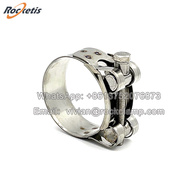En résumé, le collier de serrage robuste à boulon unique est le choix idéal pour fixer les tuyaux de refroidissement de grand diamètre, les conduites de transfert de fluides industriels et les raccords d'échappement marins. Il est spécialement conçu pour les situations exigeant une étanchéité plus robuste, fiable et durable qu'un collier standard, sans nécessiter la force extrême d'un boulon en T, offrant ainsi un équilibre optimal entre résistance, durabilité et prix.