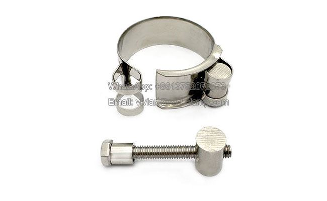 The heavy duty stainless steel hose clamps is an industrial-grade pipeline fastening device specifically designed for high-pressure applications, constructed with premium 316 stainless steel components including a steel band, bolts, tongue plate, sleeve, and solid load-bearing shaft, offering exceptional corrosion resistance for demanding operating environments.