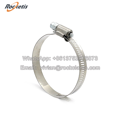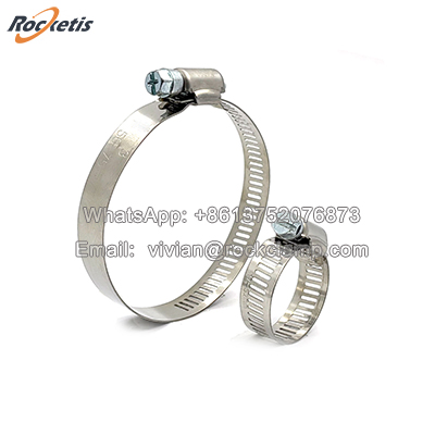 Worm Drive Mechanism: This is the defining feature. The clamp consists of a perforated stainless steel band and a housing that contains a worm gear. A screw (the worm) is turned, which engages with the gear teeth on the band, allowing for: