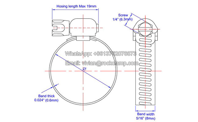 W2 - Hosing and band stainless steel 201 or 301, Screw carbon steel with zinc/nickel plated